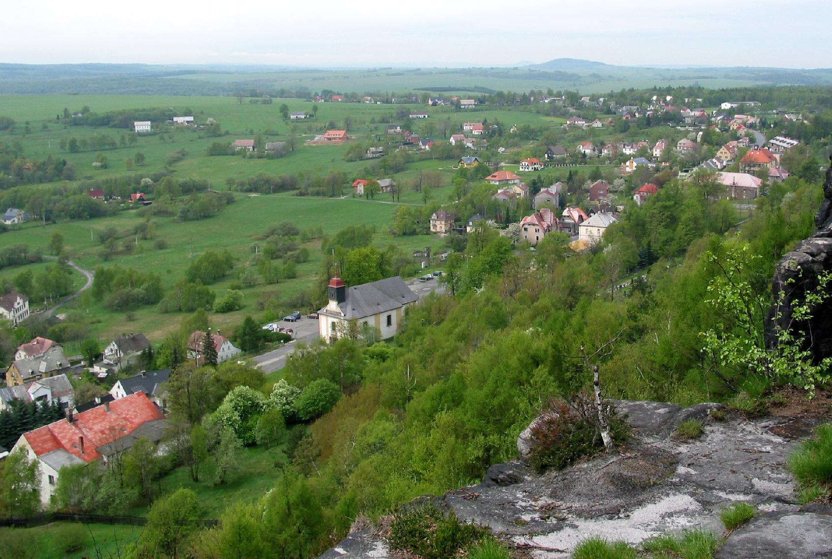 auf die Kirche und Tyssa Mitte, Richtung Westen |